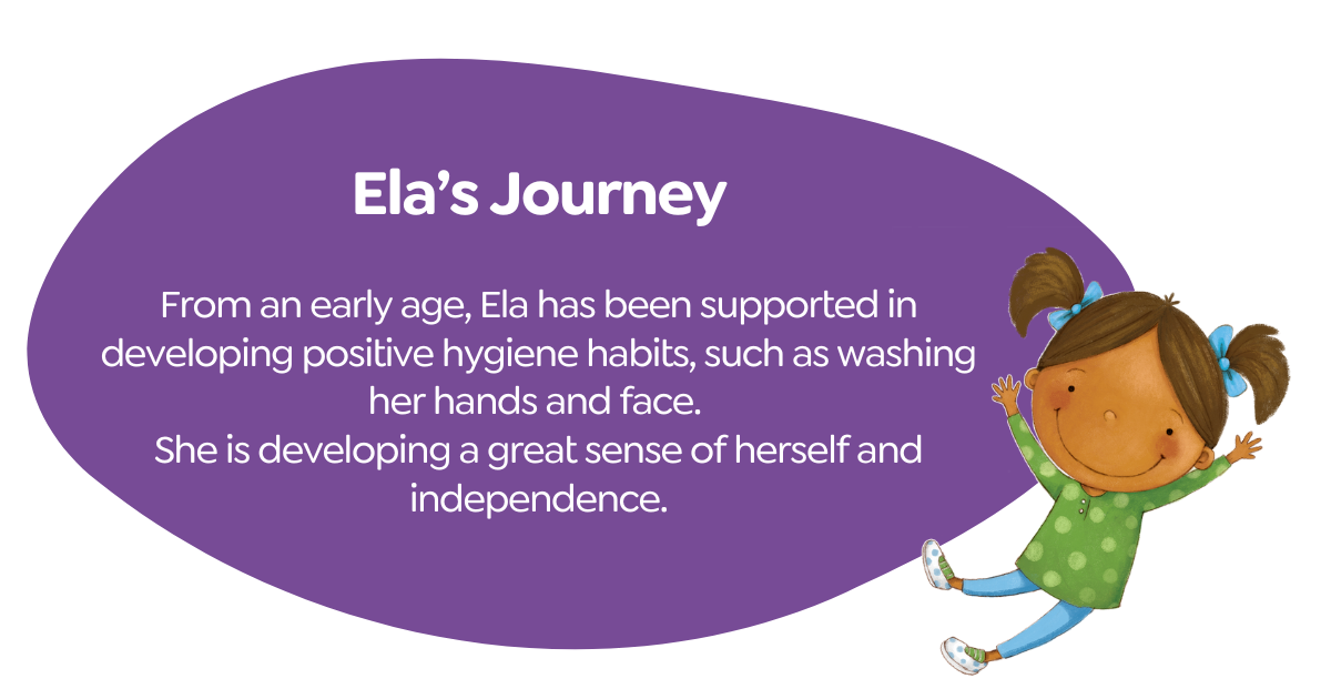 In preschool, children continue to strengthen their independence and resilience through hands-on experiences and supportive routines. Practitioners model good hygiene and make it fun -whether it’s washing away germs, using cleaning caddies at mealtimes, or joining in games about keeping healthy. Children are encouraged to wash their hands and face independently, help clean resources, and take pride in caring for their environment. Language and communication skills grow through songs, rhymes, and stories that encourage repetition and prediction, supported by programmes like Boogie Mites Letters and Sounds.